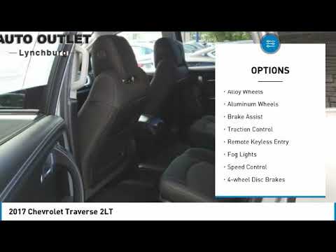 2017 Chevrolet Traverse 2LT in Silver Ice Metallic / FRONT WHEEL DRIVE (FWD) / BACK UP CAMERA / NAVIGATION / HEATED FRONT SEATS / CARFAX 1-OWNER / BALANCE OF FACTORY WARRANTY REMAINS / SPLIT FOLDING THIRD ROW SEATING / SECOND ROW CAPTIANS CHAIRS / FRONT BUCKET SEATS / CRUISE CONTROL / BLUETOOTH / MULTI MEDIA DISPLAY SCREEN / POWER WINDOWS / POWER LOCKS + MIRRORS / ALLOY WHEELSbrbrStock numbers starting with VA are located at Terry Auto Outlet at 2828 Candlers Mtn Rd, Lynchburg, VA. Stock numbers starting with CC are located at Terry Clearance Center at 18145 Forest Rd, Lynchburg, VA Stock numbers starting with SB are located at Terry of South Boston at 1426 Wilborn Ave South Boston, VA. All other stock numbers are located at Terry VW Subaru at 19134 Forest Rd, Lynchburg VA 24502.