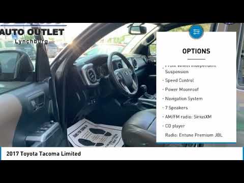 2017 Toyota Tacoma Limited / 4-WHEEL DRIVE (4WD) / POWER WINDOWS / POWER LOCKS + MIRRORS / CRUISE CONTROL / BLUETOOTH / MULTI MEDIA DISPLAY SCREEN / BACK UP CAMERA / NAVIGATION / ALL LEATHER INTERIOR / HEATED FRONT SEATS / SUNROOF / TOW PACKAGE / TRAILER HITCH RECEIVER / TRUCK BED LINER / ALLOY WHEELS / CARFAX 1-OWNER / CLEAN CARFAX WITH NO REPORTED ACCIDENTS / BALANCE OF FACTORY WARRANTY REMAINSbrbrThis vehicle is located at 2828 Candlers Mountain Rd. Lynchburg VA. Please call one of our consultants and check availability at (434) 386 – 8439.brbr*Our vehicles are hand picked and sent through a very detailed inspection to ensure we provide the highest of quality to you. We have no hidden reconditioning fees like most other dealers. Best of all, we provide Free State of Virginia Inspection for as long as you own your vehicle purchased from TERRY